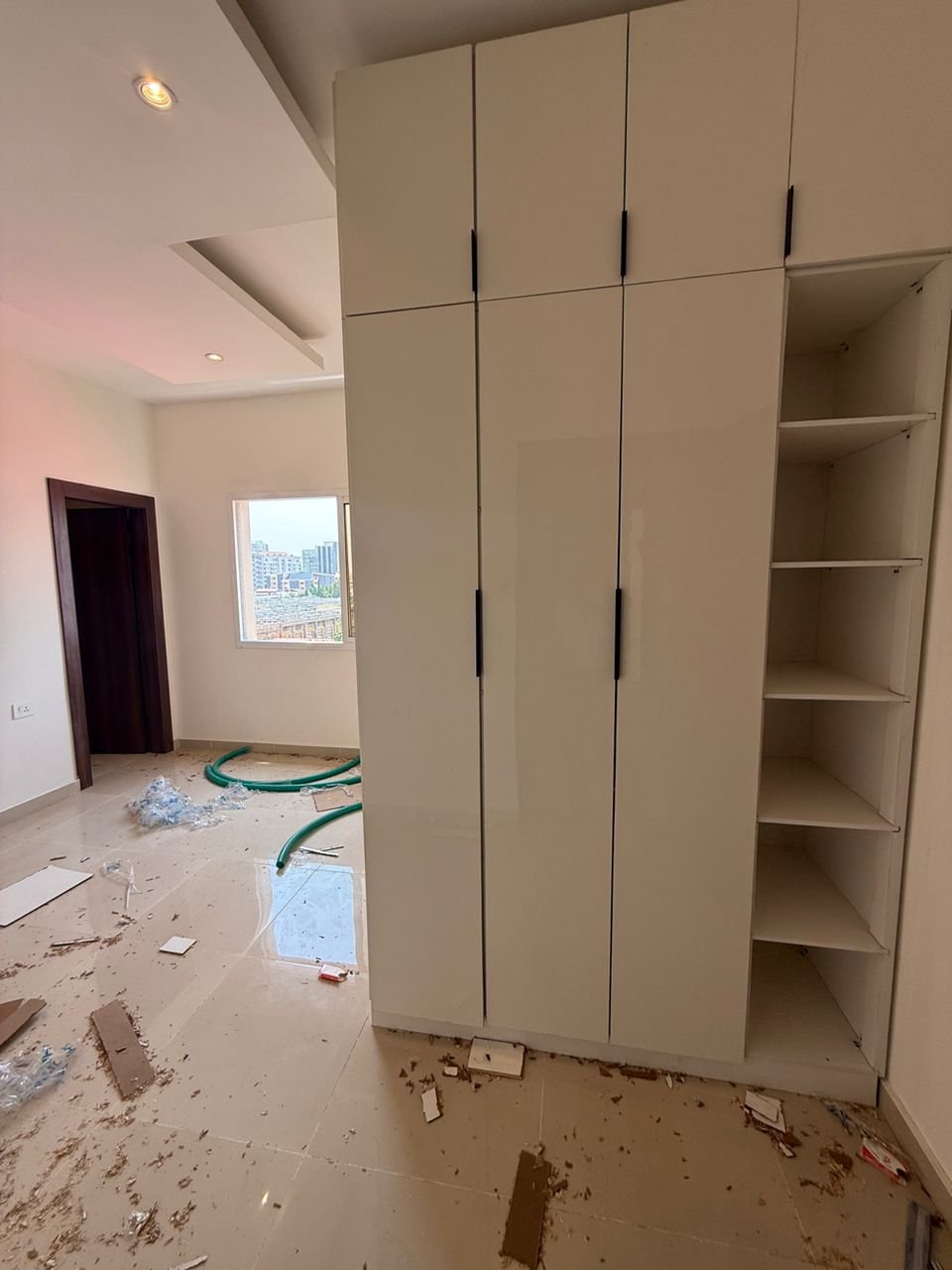 Step into a bright and spacious living area that opens seamlessly into a stylish lounge, perfect for relaxation or entertaining. Large windows frame beautiful city views, while high-quality finishes—such as antibacterial satin paint and fully weather-proof exterior tiles—ensure durability and elegance throughout. The apartment is serviced by a Perkins smart low-consumption, super-silent generator, guaranteeing uninterrupted power and comfort.