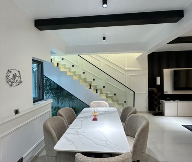 This furnished 3-bedroom maisonette offers a comfortable and stylish living space spread across two levels. Thoughtfully designed, it combines functionality with modern décor, making it ideal for both families and individuals seeking a ready-to-move-in home. The lower level features a spacious living and dining area alongside a fully equipped kitchen, while the upper level houses well-proportioned bedrooms for privacy and relaxation. With quality furnishings and fittings throughout, this home provides a warm and inviting atmosphere.