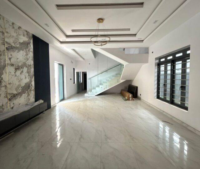 This 5-bedroom fully detached duplex sits on a neatly planned 300/350sqm plot, offering a well-balanced mix of space and functionality. The home opens into a comfortable living and dining area with good natural lighting, leading to a simple, practical kitchen layout. All five bedrooms are en-suite, giving each occupant personal privacy and convenience.