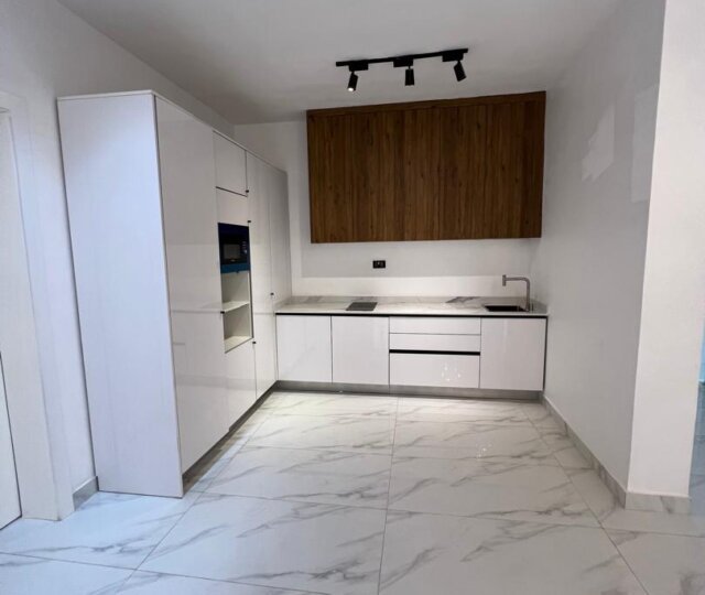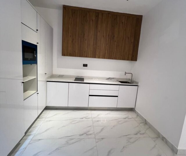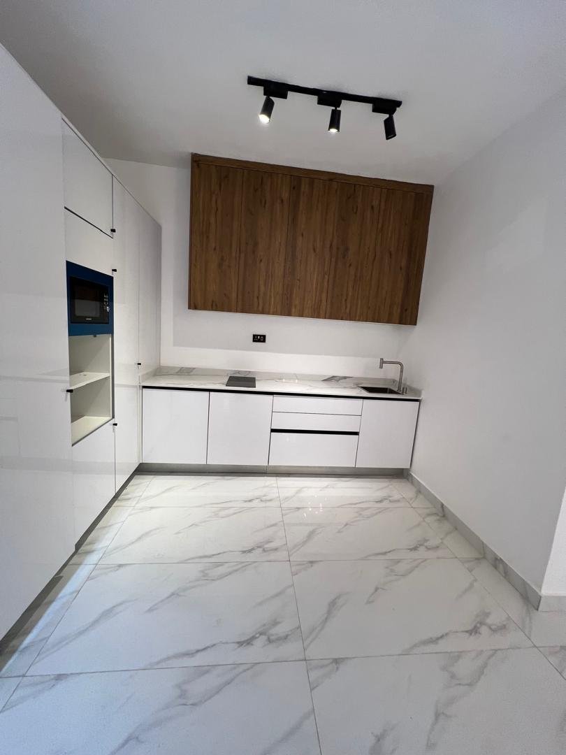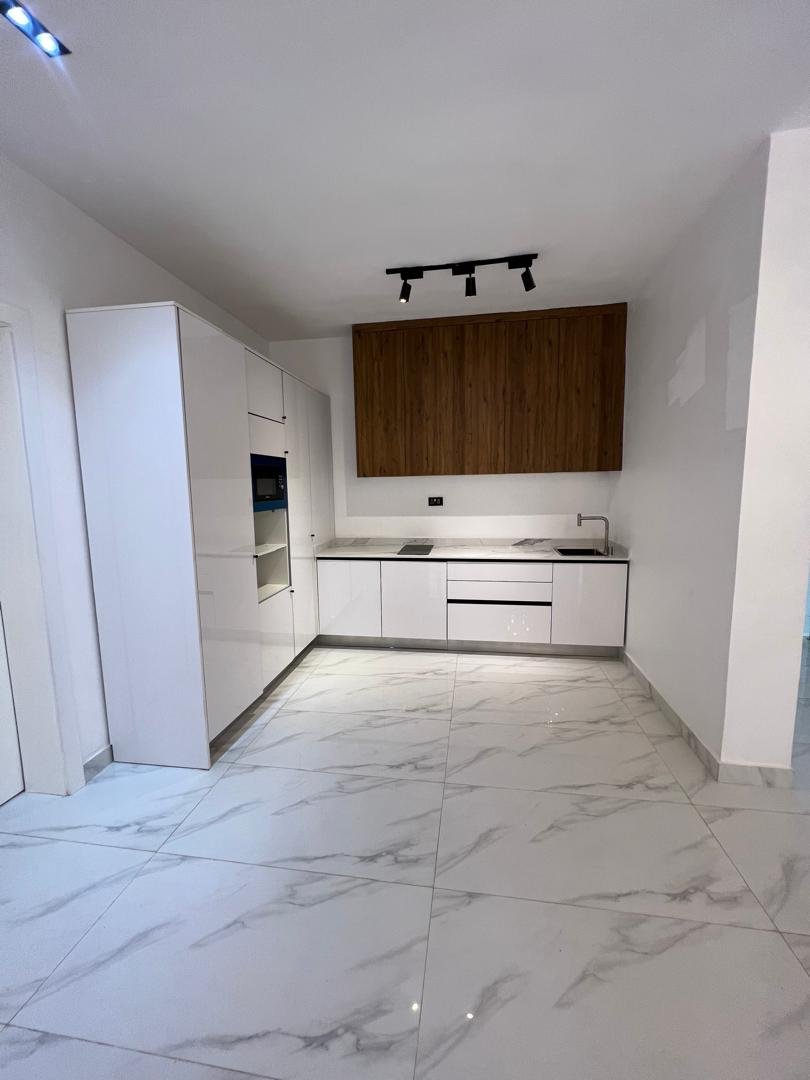 From the moment you enter, you’re greeted by a grand entrance hallway that flows into a luminous double-volume living area, with wide windows inviting natural light and elegance into every corner. The dining area sits adjacent to a sleek, fully fitted kitchen boasting top-of-the-line appliances, marble countertops, and a pantry for convenience.