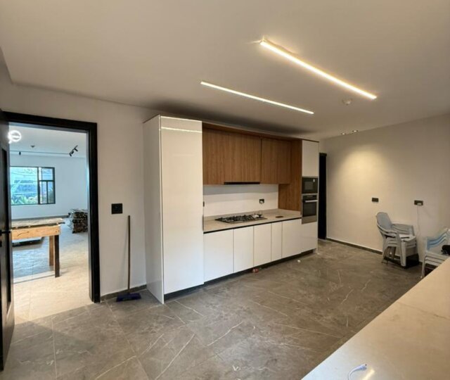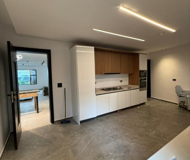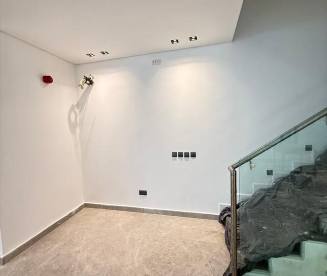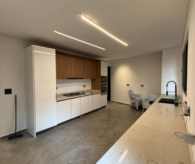 The expansive living and dining area exudes class, comes with high ceilings, bespoke lighting, and a seamless flow that enhances both relaxation and entertainment. The fully fitted modern kitchen is a chef’s delight, equipped with high-end appliances, sleek cabinetry, and ample workspace for culinary excellence.