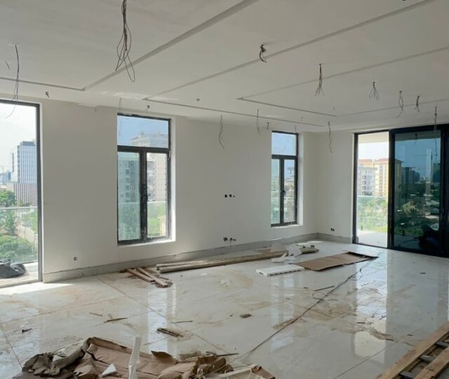 Boasting generous living proportions, the maisonette welcomes you with a spacious lounge and dining area, ideal for formal entertaining or gatherings. Tall ceilings, large windows, and sleek marble floors amplify natural light and give the space a sense of open grandeur.