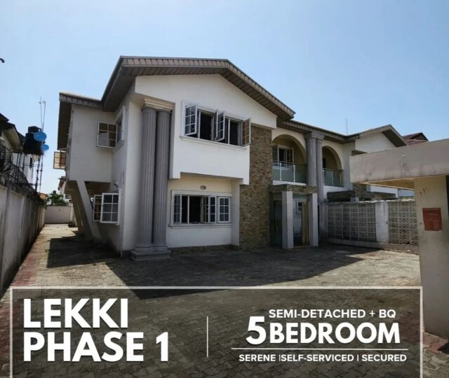 Self-Serviced 5 Bedroom Semi-Detached Duplex + BQ in Lekki Phase 1, Lekki, Lagos